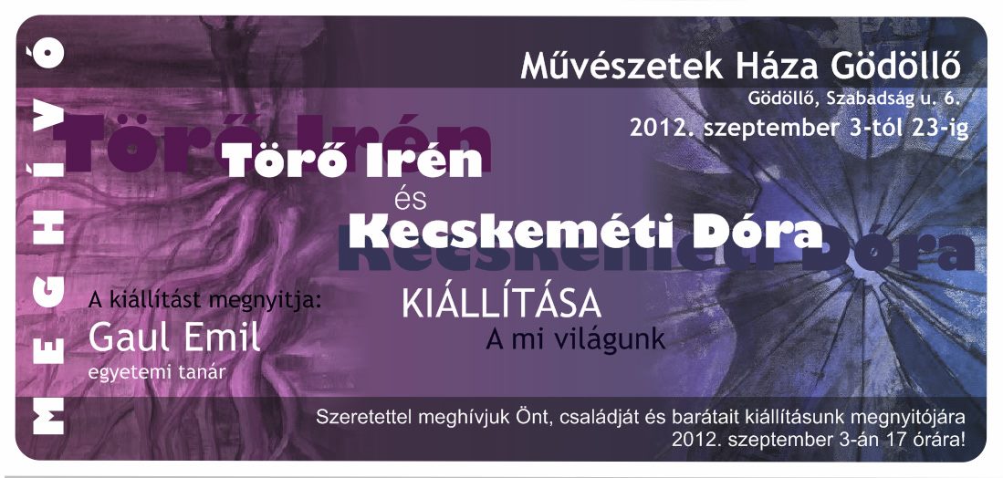 Édesanyámmal Törő Irénnel első közös kiállításunk lesz ez. Helyszín a gödöllői Művészetek Háza.